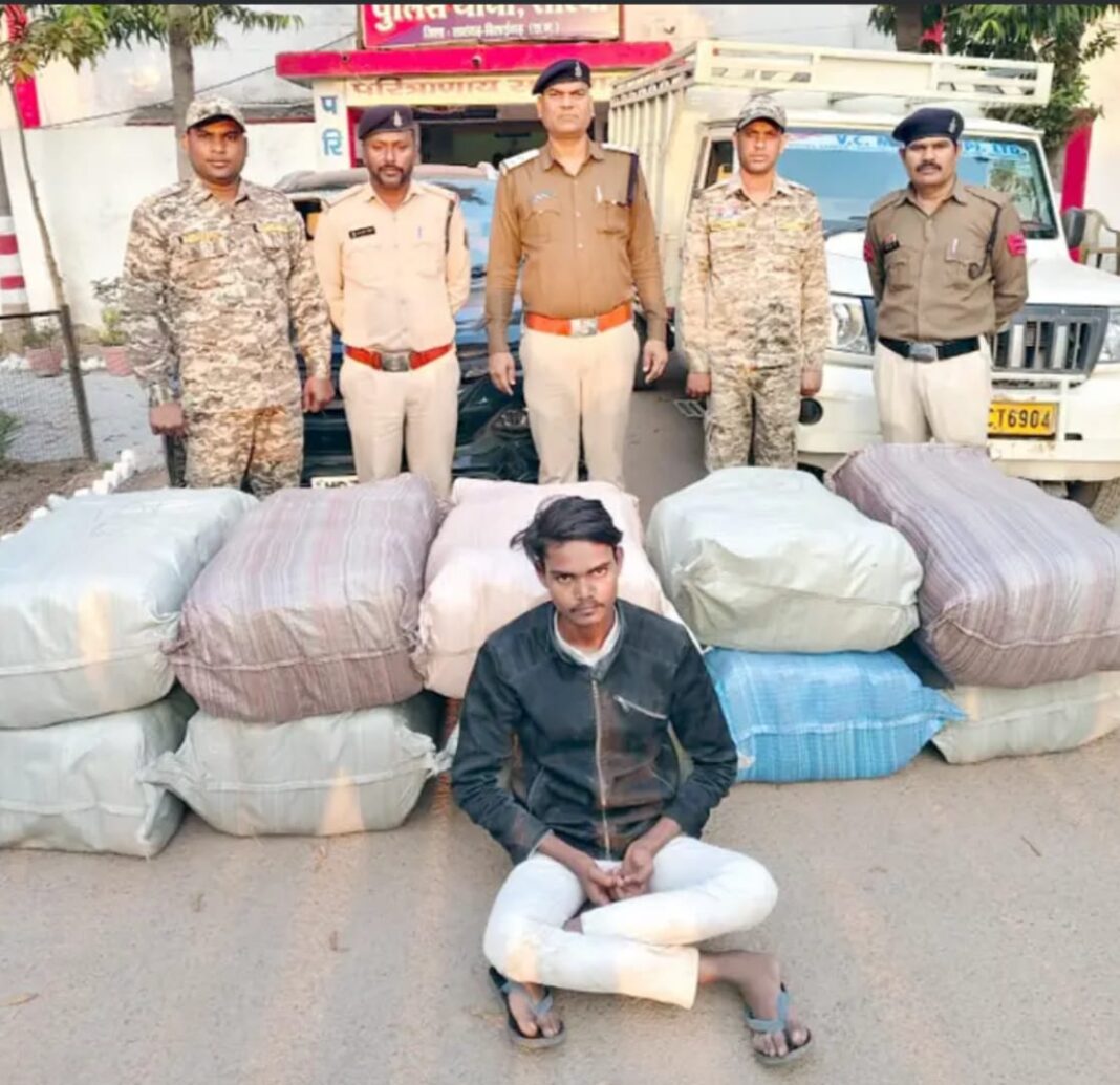 सारंगढ़। जिला पुलिस अधीक्षक आंजनेय वार्ष्णेय के द्वारा जिले के सभी थाना चौकी प्रभारियों को जुआ, सट्टा, शराब, अवैध मादक पदार्थ गांजा में संलिप्त व्यक्तियों पर कड़ी कार्यवाही करने हेतु निर्देशित करने पर अति0 पुलिस अधीक्षक श्रीमती निमिषा पाण्डेय एवं उपपुलिस अधी. अविनाश मिश्रा के मार्गदर्शन में थाना प्रभारी प्रमोद यादव के कुशल नेतृत्व मे सरिया पुलिस ने 300 किलो 200 ग्राम गांजा के साथ 1आरोपी को गिरफ्तार करने में सफलता प्राप्त हुई है विवरण इस प्रकार है कि 26 दिसंबर को दौरान पेट्रोलिंग सूचना मिला की उड़ीसा तरफ से पिकअप क्र क्क 64 ष्टञ्ज 6904 में भारी मात्रा में गांजा आ रहा है और सामने कार से पायलेटिंग किया जा रहा है की सूचना पर खजूरिया तालाब सरिया पास सफेद रंग के पिकअप क्र सीजी क्क 64 ष्टञ्ज 6904 को घेराबंदी कर पकड़ा गया जिसमें से सब्जी कैरेट को हटाने पर अंदर दस बोरी में भरा कुल 300 किलो 200 ग्राम अवैध मादक पदार्थ गांजा मिला। पिकअप में सवार आरोपी राहुल कुमार से पूछताछ करने पर अपने अन्य 04 साथियों के साथ बलांगीर उड़ीसा से गांजा लेकर फतेहपुर उत्तरप्रदेश ले जाना बताया। पिक अप में मिले गांजा को गवाहों के समक्ष जप्त कर आरोपी राहुल कुमार राजपूत पिता रामविलास उम्र 22 वर्ष ग्राम बमरौली थाना हुसैनगंज जिला फतेहपुर ( उप्र) के खिलाफ विधिवत् कार्यवाही करते हुए थाना सरिया में अप क्र 278/25 धारा 20 बी ठ्ठस्रश्चह्य एक्ट का अपराध दर्ज किया गया है। पिकअप गाड़ी के सामने पायलेटिंग कर रहे रेनॉल्ट कार क्र क्क 71 क्चछ्व 9550 को भी जप्त किया गया है।पायलेटिंग गाड़ी सवार में अन्य 04 आरोपियों की पतासाजी की जा रही है। सम्पूर्ण कार्यवाही में थाना प्रभारी प्रमोद यादव, सउनि सुमन चौहान, प्रआ सुरेंद्र सिदार, मोहन गुप्ता, अनिल साहू आ. नरेंद्र चंद्रा, दिगंबर पटेल, राजेश नारंग, ताराचंद, श्रवण टंडन साइबर सेल प्रभारी सउनि रामकुमार मानिकपुरी, विजय यादव, दीपक मैत्री कृष्णा डनसेना और समस्त थाना स्टाफ का योगदान रहा।