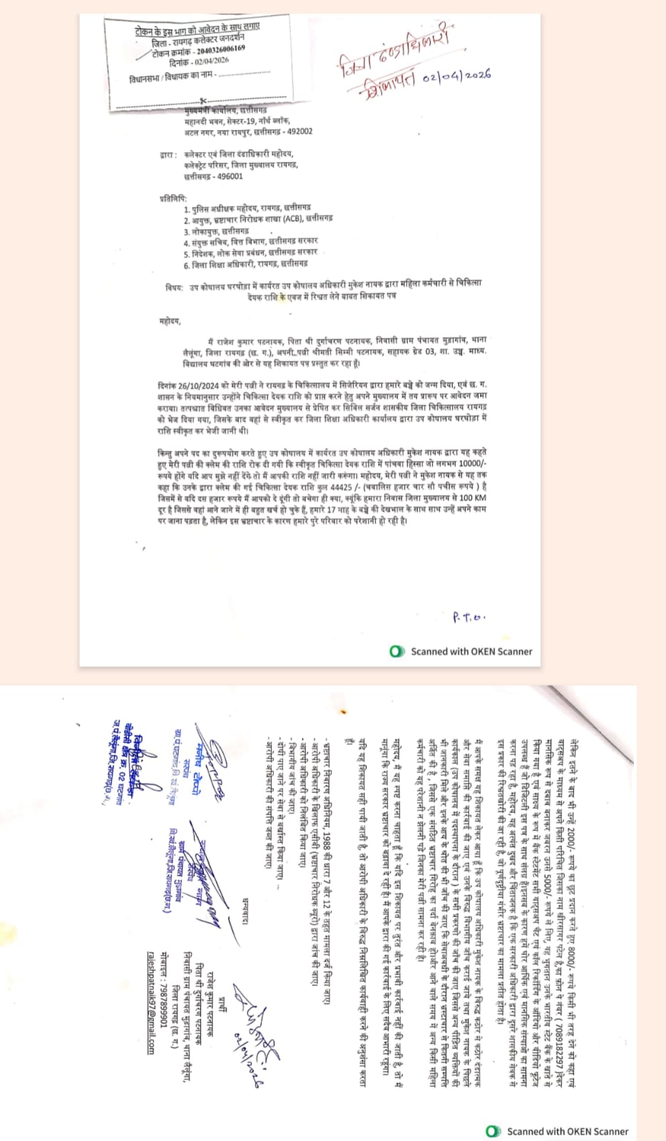 किन्तु अपने पद का दुरूपयोग करते हुए उप कोषालय में कार्यरत उप कोषालय अधिकारी मुकेश नायक द्वारा यह कहते हुए मेरी पत्नी की क्लेम की राशि रोक दी गयी कि स्वीकृत चिकित्सा देयक राशि में पांचवा हिस्सा जो लगभग 10000/-रूपये होंगे यदि आप मुझे नहीं देंगे तो मैं आपकी राशि नहीं जारी करूंगा।