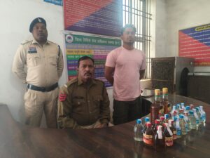 थाना प्रभारी कोतवाली निरीक्षक सुखनंदन पटेल एवं टीम द्वारा जोगीडीपा निवासी बलराम सहिस (36 वर्ष) को अवैध शराब के साथ गिरफ्तार किया गया। सूचना मिली थी कि आरोपी किराना दुकान की आड़ में अवैध शराब बिक्री कर रहा है। रेड के दौरान प्रारंभिक इंकार के बाद सख्ती से पूछताछ करने पर आरोपी ने दुकान से *19 पाव देशी प्लेन, 06 पाव देशी मसाला तथा 02 बोतल मैकडावल नंबर वन अंग्रेजी शराब कुल 06.00 बल्क लीटर (कीमत 3640 रुपये)* निकालकर पेश किया। जप्ती उपरांत आरोपी के विरुद्ध थाना कोतवाली में धारा 34(2), 59(क) आबकारी एक्ट के तहत प्रकरण दर्ज कर उसे न्यायिक रिमांड पर जेल भेजा गया है। कार्रवाई में प्रधान आरक्षक हेमंत चन्द्रा, आरक्षक जितेन्द्र दुबे एवं कमलेश यादव शामिल रहे।