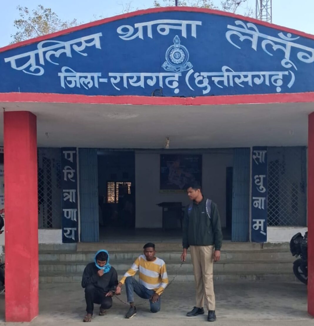 कल दिनांक 11.02.2026 को थाना प्रभारी लैलूंगा उप निरीक्षक गिरधारी साव के नेतृत्व में पुलिस टीम ने मुखबिर सूचना पर ग्राम पाकरगांव अटल चौक के पास केंदाटिकरा मार्ग पर घेराबंदी की। कार्रवाई दौरान पुलिस टीम ने बिना नंबर टी.वी.एस. राईडर मोटर सायकल में सवार दो व्यक्तियों को रोका गया। चालक ने अपना नाम *मोहन यादव उर्फ गुन्नू (22 वर्ष), निवासी पत्थलगांव बिलाईटांगर वार्ड क्रमांक 09 थाना पत्थलगांव जिला जशपुर तथा पीछे बैठे व्यक्ति ने अपना नाम बिरोज कुमार दास ब्राम्हण (36 वर्ष), निवासी घरजियाबथान थाना पत्थलगांव जिला जशपुर* बताया। विधिवत तलाशी लेने पर आरोपियों के कब्जे से *03 किलो 170 ग्राम गांजा, जिसकी अनुमानित कीमत 1,50,000 रुपये* है, तथा गांजा परिवहन में प्रयुक्त *एक बिना नंबर टी.वी.एस. राईडर मोटर सायकल (कीमत लगभग 10,000 रुपये) जप्त* की गई। आरोपियों के विरुद्ध *थाना लैलूंगा में अपराध क्रमांक 45/2026 धारा 20(बी) एनडीपीएस एक्ट* के तहत प्रकरण दर्ज कर न्यायिक रिमांड पर जेल भेजा गया है। कार्रवाई में उप निरीक्षक गिरधारी साव, उप निरीक्षक चन्द्र कुमार सिंगार, प्रधान आरक्षक नंद कुमार पैंकरा, आरक्षक चमरसाय भगत एवं गोविन्द बनर्जी की महत्वपूर्ण भूमिका रही।