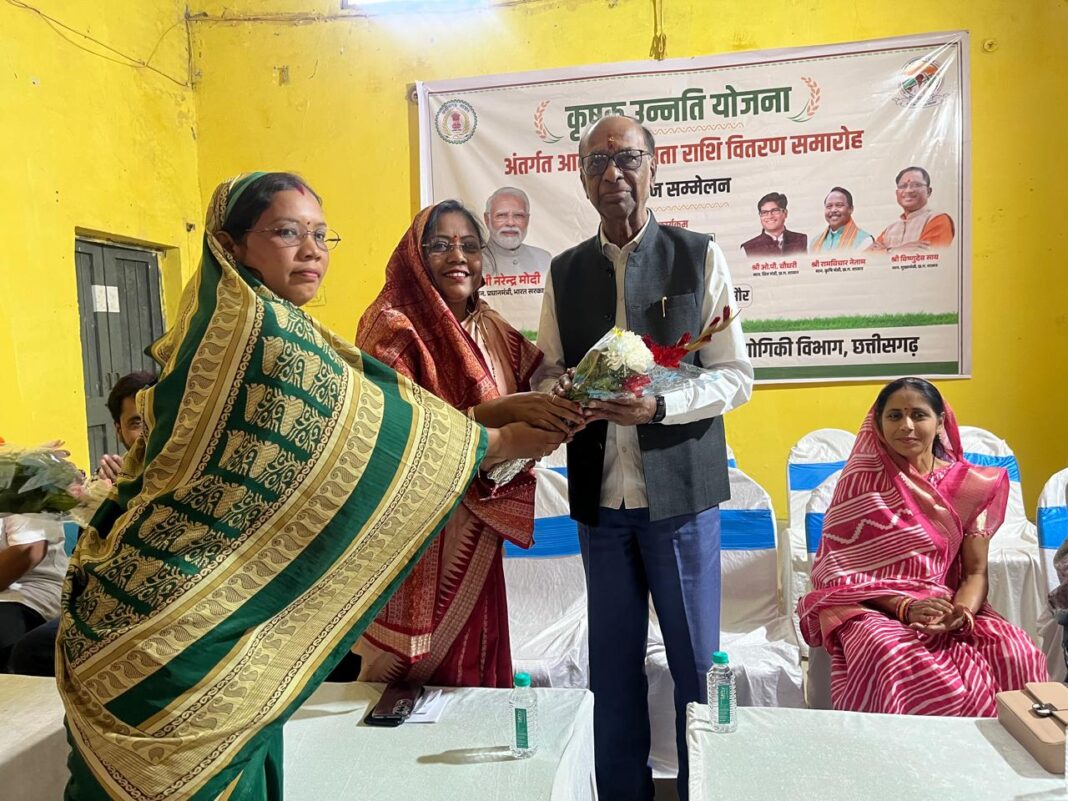 रायगढ़ जिले के विकासखंड पुसौर के मंगल भवन में आयोजित जनपद पंचायत स्तरीय कार्यक्रम के माध्यम से कृषक उन्नति योजना अंतर्गत आदान सहायता राशि वितरण समारोह एवं किसान सम्मेलन में मुख्य अतिथि के रूप में रायगढ़ के पूर्व विधायक विजय अग्रवाल सम्मिलित हुये एवं कार्यक्रम के अध्यक्षता के रूप में जनपद पंचायत पुसौर के अध्यक्ष श्रीमति हेमलता हरिशंकर चौहान, अति विशिष्ट अतिथियों में नगर पंचायत पुसौर अध्यक्ष श्रीमति मानी मोहित सतपथी, जिला पंचायत सदस्य एवं कृषि स्थायी समिति सभापति वृजेश गुप्ता, जिला पंचायत सदस्य श्रीमति भाग्यवती डोलनारायण नायक , जिला पंचायत सदस्य श्रीमति लक्ष्मी जीवन पटेल, विशिष्ट अतिथियों में पुसौर जनपद पंचायत सदस्य एवं कृषि स्थायी समिति सभापति मुक्तेश्वर पंडा, पुसौर नगर पंचायत अध्यक्ष प्रतिनिधि मोहित सतपथी, भाजपा पुसौर मंडल अध्यक्ष जैमिनी गुप्ता, कोड़ातराई मंडल अध्यक्ष संदीप पंडा की गरिमा में उपस्थिति रही ।इस अवसर पर वर्चुअल माध्यम से किसानों को संबोधित करते हुए मुख्यमंत्री श्री विष्णुदेव साय ने कहा कि आज का दिन किसानों के सम्मान और स्वाभिमान का दिन है। उन्होंने कहा कि प्रधानमंत्री श्री नरेंद्र मोदी जी की गारंटी को पूरा करते हुए 3100 ₹प्रति क्विंटल धान की कीमत का वादा धरातल पर उतर चुका है ।मुख्यमंत्री ने कहा कि हमने वादा किया था कि किसान भाई होली का त्योहार धूमधाम से मना सके ,इसलिए होली पर्व से पहले बोनस राशि जारी की गई है। इस अवसर पर जनपद पंचायत स्तरीय कार्यक्रम में कृषक उन्नति योजना आदान सहायता बोनस राशि वितरण वर्चुअल कार्यक्रम एवं किसान सम्मेलन के मुख्य अतिथि रायगढ़ के पूर्व विधायक विजय अग्रवाल ने कार्यक्रम को संबोधित करते हुए कहा कि मुख्यमंत्री श्री विष्णुदेव साय जी ने प्रदेश के 25 लाख से अधिक किसानों के खाते में अंतर की राशि 10324 करोड़ की राशि अंतरित की, जिसमें पुसौर विकासखंड के 16115 किसानों के खाते में राशि अंतरित की गई । यह राशि किसानों को खाद, बीज एवं अन्य कृषि आदानों की व्यवस्था में सहायक सिद्ध होगी। होली के पूर्व मिलने वाली यह आर्थिक सहायता किसानों की तत्काल जरूरतों को पूरा करने के साथ ही आगामी खरीफ सीजन की तैयारी को मजबूती देगी और कृषि गतिविधियों में नई ऊर्जा का संचार करेगी।