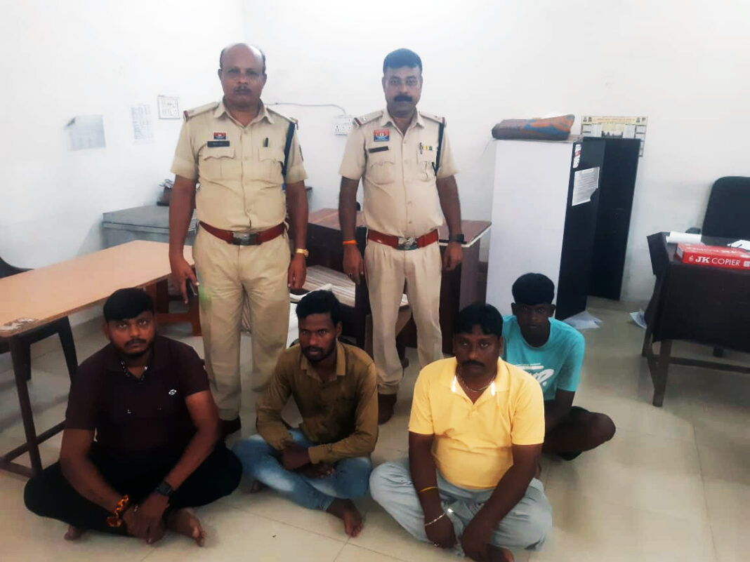 जुआ खेलते पकड़े गए आरोपियों में तरूण उर्फ बिल्ला यादव पिता स्व. दीना यादव (28 वर्ष), जगन्नाथ उर्फ काटू जायसवाल पिता स्व. समयलाल जायसवाल (39 वर्ष), निर्मल उर्फ नानकन देवांगन पिता राजेश देवांगन (25 वर्ष) — तीनों निवासी कोतरारोड़ बावलीकुंआ, और बंटी चौधरी पिता समीर चौधरी (28 वर्ष) निवासी शिव शितला मंदिर के पास, धांगरडीपा रायगढ़ शामिल हैं। पुलिस ने इनके कब्जे से ताश की 52 पत्तियों के साथ-साथ जुआ में लगी 5,540 रुपये नकद राशि व एक चटाई बरामद की है।
