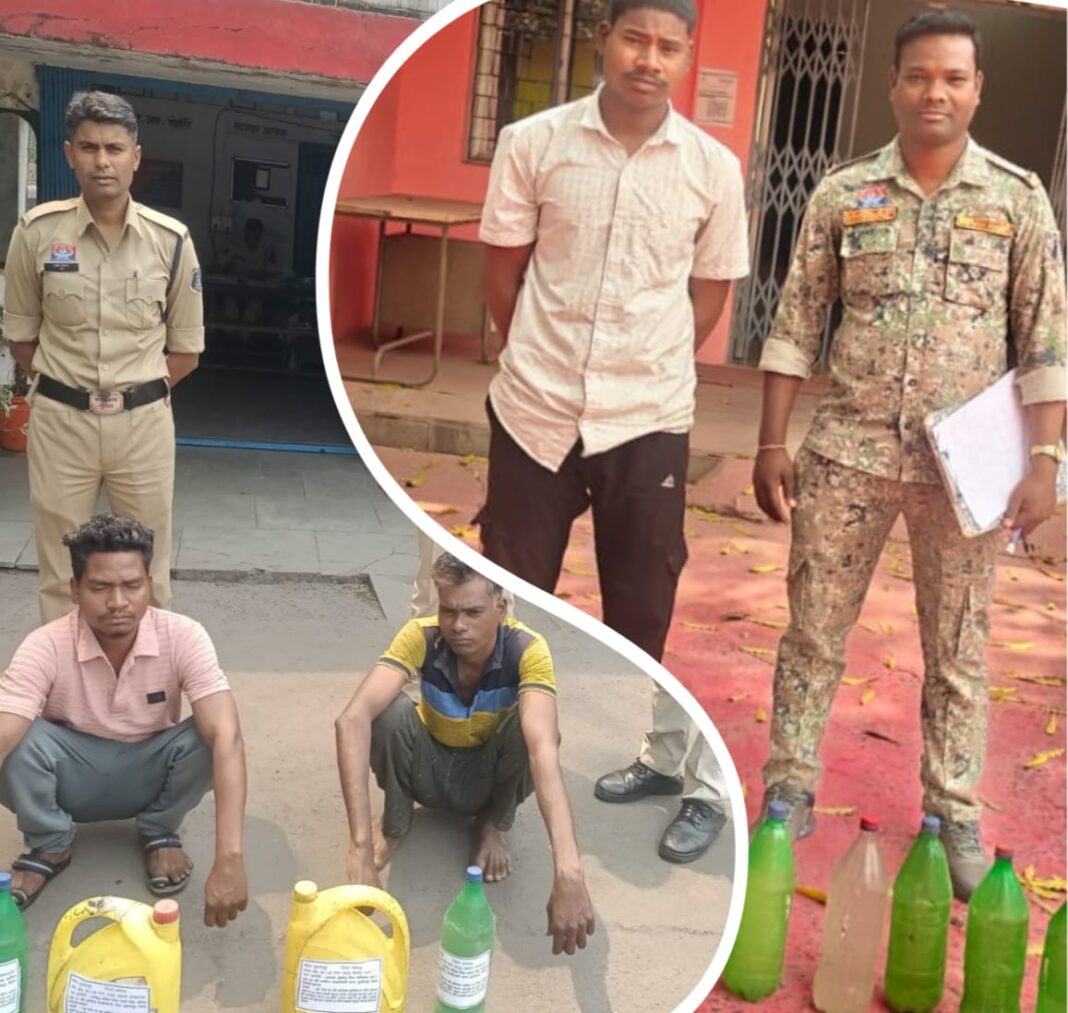 रायगढ़ । एसएसपी श्री शशि मोहन सिंह के दिशा निर्देशन पर जिले में अवैध मादक पदार्थों की बिक्री पर अंकुश लगाने चलाए जा रहे *“ऑपरेशन आघात”* के तहत पुलिस द्वारा लगातार कार्रवाई की जा रही है। इसी क्रम में आज तमनार, चौकी खरसिया तथा कल थाना भूपदेवपुर पुलिस ने अलग-अलग स्थानों पर दबिश देकर अवैध महुआ शराब के विरुद्ध ताबड़तोड़ कार्रवाई की। कार्रवाई के दौरान *चार आरोपियों के कब्जे से कुल 44 लीटर कच्ची महुआ शराब* बरामद कर आरोपियों के विरुद्ध आबकारी एक्ट के तहत वैधानिक कार्रवाई की गई है।