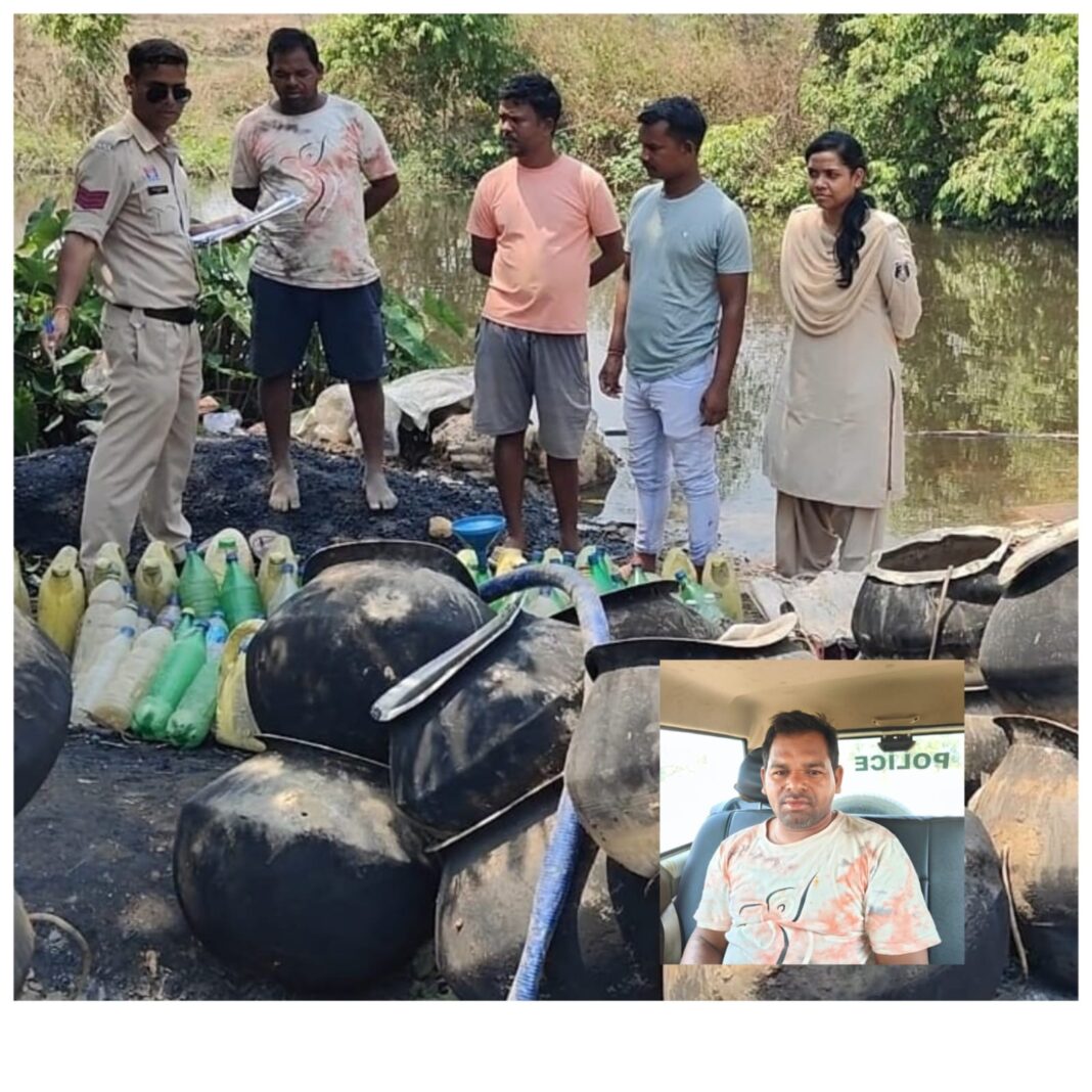मुखबिर से प्राप्त सूचना पर पुलिस टीम ने मौके पर घेराबंदी कर दबिश दी, जहां आरोपी छोटू डनसेना को अवैध रूप से महुआ शराब बनाते हुए रंगे हाथों पकड़ा गया। पूछताछ में आरोपी ने अवैध बिक्री के उद्देश्य से शराब निर्माण करना स्वीकार किया। पुलिस ने मौके से करीब 190 लीटर महुआ शराब, जिसकी अनुमानित कीमत ₹19,000 है, जप्त की। साथ ही शराब बनाने में प्रयुक्त सिल्वर के बड़े बर्तन, टिन टीपा सहित अन्य उपकरण भी जब्त किए गए। कार्रवाई के दौरान मौके पर संचालित 8 अवैध भट्ठियों को भी नष्ट किया गया।