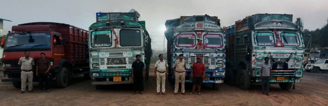 इसी कड़ी में डीएसपी सुशांतो बनर्जी के सुपरविजन में थाना प्रभारी पूंजीपथरा निरीक्षक रामकिंकर यादव, उप निरीक्षक दिलीप बेहरा और एएसआई उमाशंकर विश्वाल के नेतृत्व में पुलिस टीम ने अग्रोहा प्लांट के पास पार्किंग, तमनार चौक पूंजीपथरा और गेरवानी सलासर चौक क्षेत्र में मुखबिर सूचना पर कार्रवाई करते हुए 4 ट्रकों को अवैध कबाड़ परिवहन करते पकड़ा और क्रमवार सघन कार्रवाई की गई।