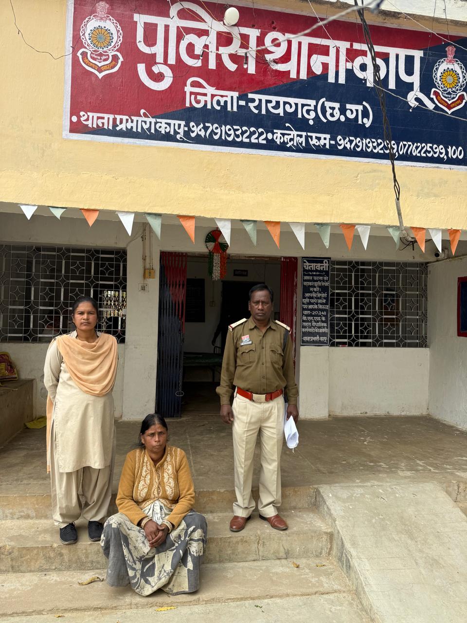 बीते दिवस थाना कापू प्रभारी के नेतृत्व में मुखबिर सूचना पर ग्राम पखनाकोट सुकवासुपारा में दबिश दी गई, जहां आरोपिया श्रीमती चम्पा यादव पति रवि कुमार यादव उम्र 58 वर्ष साकिन पखनाकोट सुकवासुपारा, थाना कापू, जिला रायगढ़ (छ.ग.) के कब्जे से अवैध रूप से बिक्री हेतु रखे गए 0.818 किलोग्राम गांजा, जिसकी अनुमानित कीमत ₹13,000 है, तथा एक Oppo A11k कंपनी का मोबाइल बरामद किया गया। पूछताछ में आरोपिया द्वारा घर से गांजा बिक्री करना स्वीकार करने पर थाना कापू में धारा 20(बी) एनडीपीएस एक्ट के तहत अपराध पंजीबद्ध कर आरोपिया को विधिवत गिरफ्तार किया गया एवं न्यायालय में पेश कर रिमांड पर भेजा गया है।