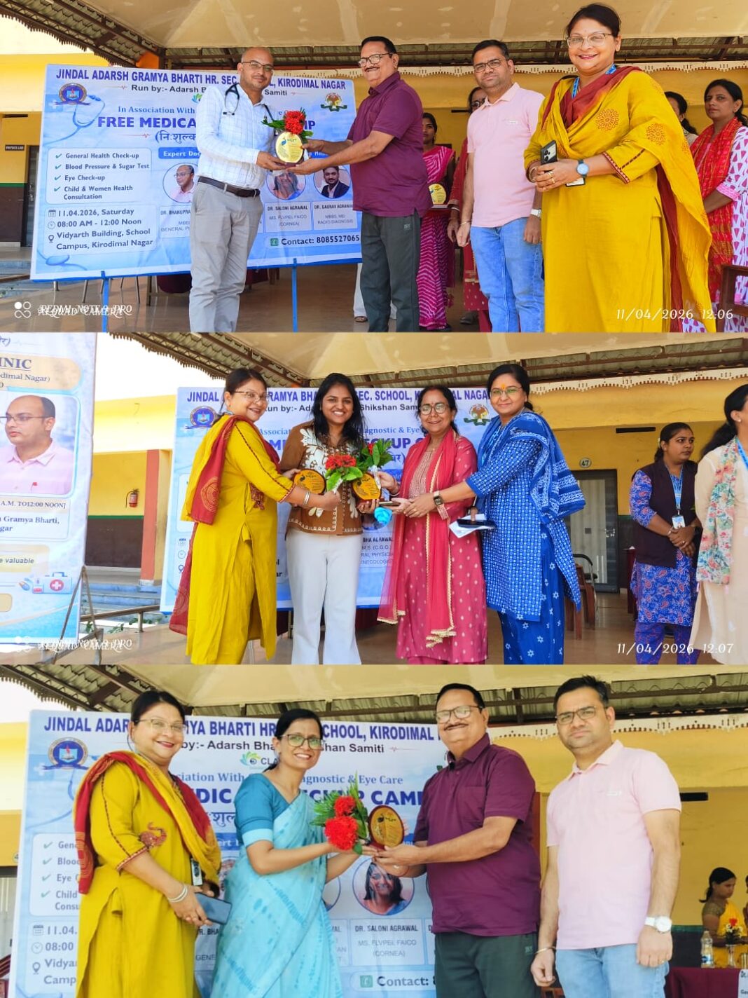 किरोड़ीमल नगर। जिंदल आदर्श ग्राम्य भारती उच्चतर माध्यमिक विद्यालय, किरोड़ीमल नगर में अंतरराष्ट्रीय स्वास्थ्य दिवस सप्ताह के उपलक्ष्य में जिंदल आदर्श ग्राम्य भारती उच्चतर माध्यमिक विद्यालय, किरोड़ीमल नगर द्वारा आदर्श भारती शिक्षण समिति, किरोड़ीमल नगर के तत्वावधान में तथा क्लैरिटी डायग्नोस्टिक एंड आई केयर के सहयोग से दिनांक 11 अप्रैल 2026 (शनिवार) को विद्यालय परिसर, “विद्यार्थ भवन” में निःशुल्क चिकित्सा जांच शिविर का आयोजन किया गया।